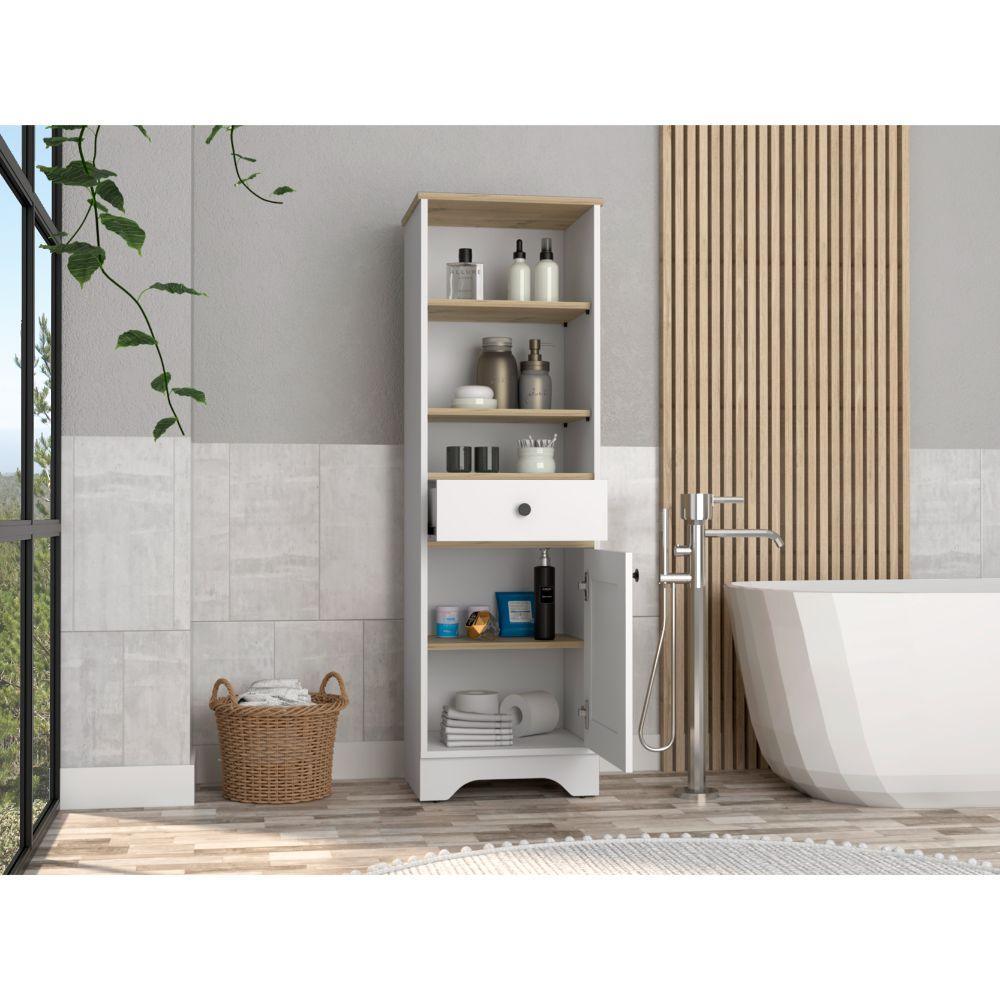 Organizador de Baño, Ajaz, Café Claro y Blanco Nevado, con Un Cajon y Puerta Para Su Almacenamiento X2