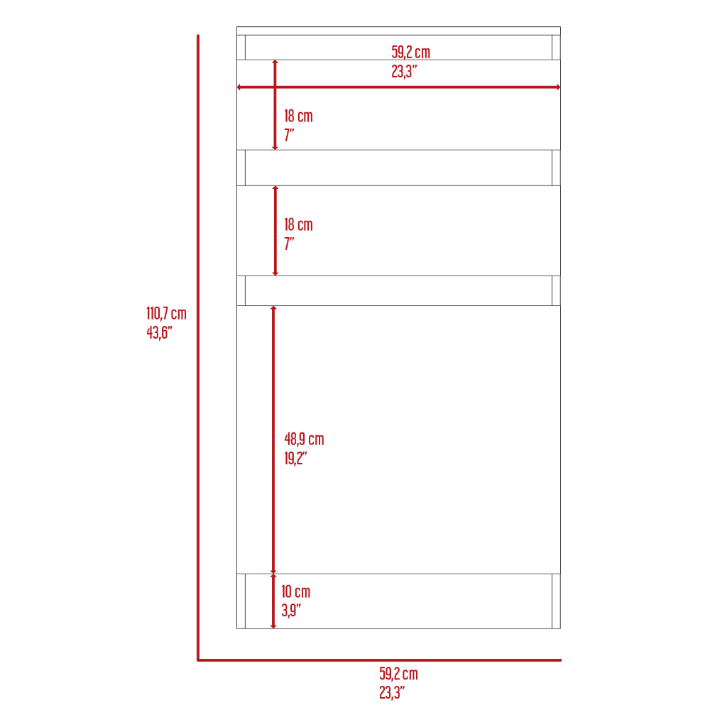 Organizador, con 1 cajón superior, 2 deslizables, y 1 puerta batiente.