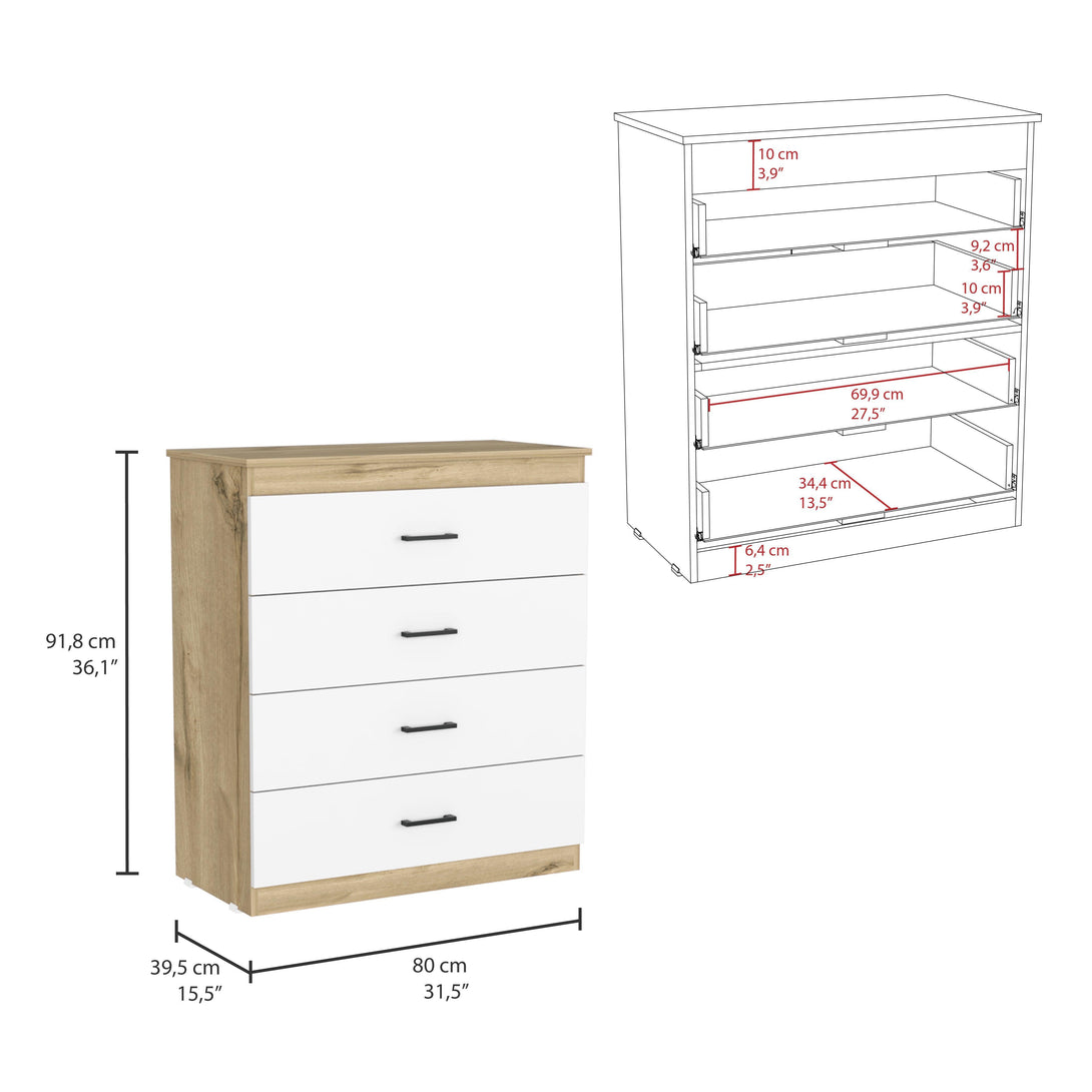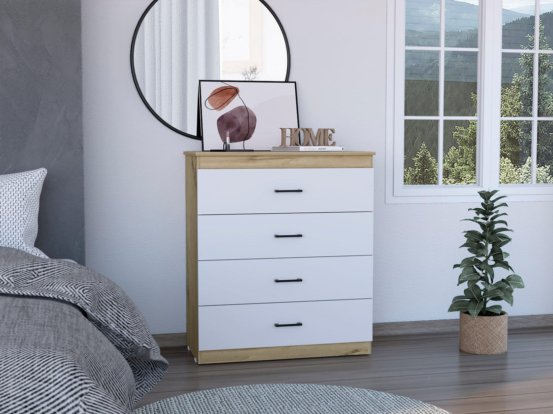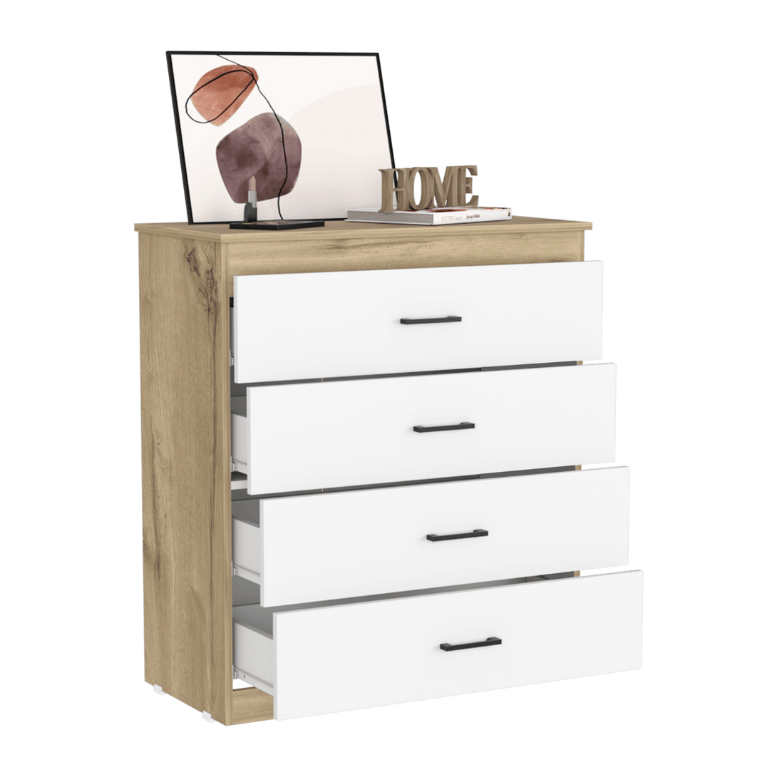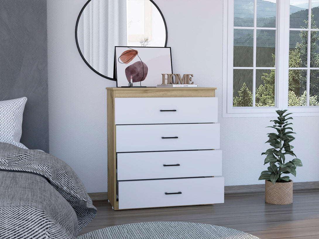 Organizador Douglas, Blanco y Café Claro, con Cuatro Cajones y Manijas Metalicas ZF X2