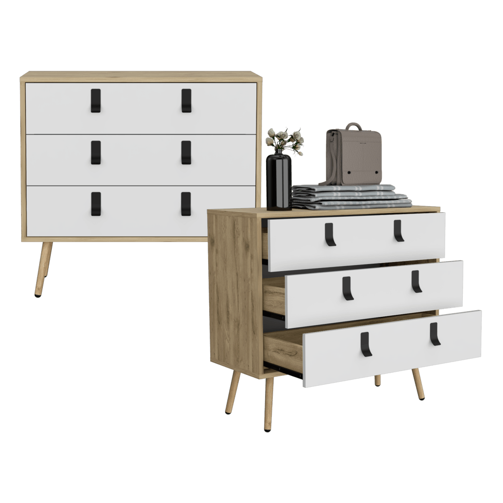 Organizador Huna, Blanco y Macadamia, Con Tres Amplios Cajones Deslizadores Para Guardar Objetos Personales X2