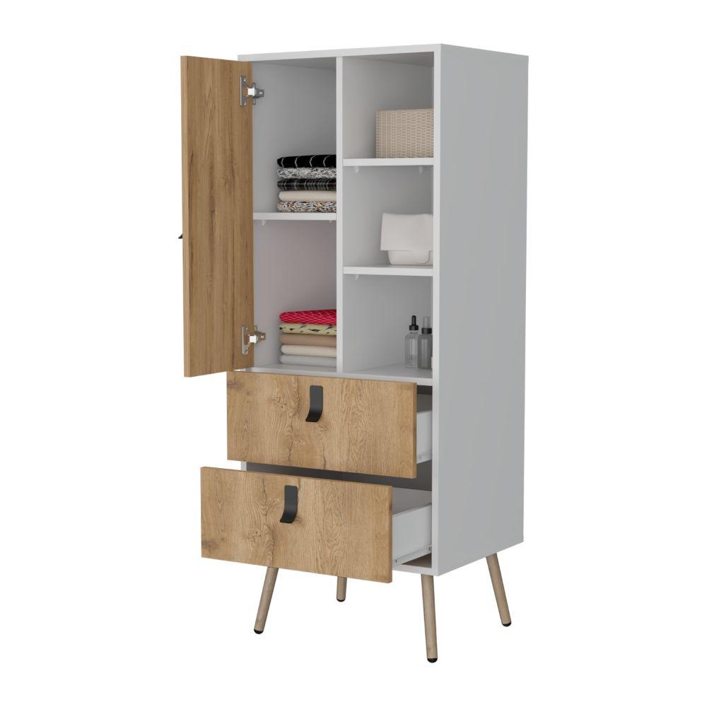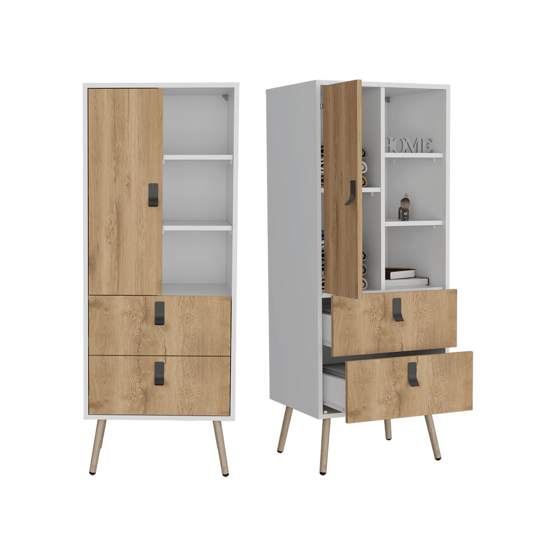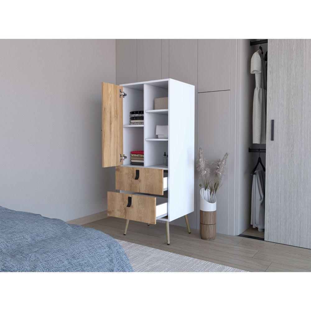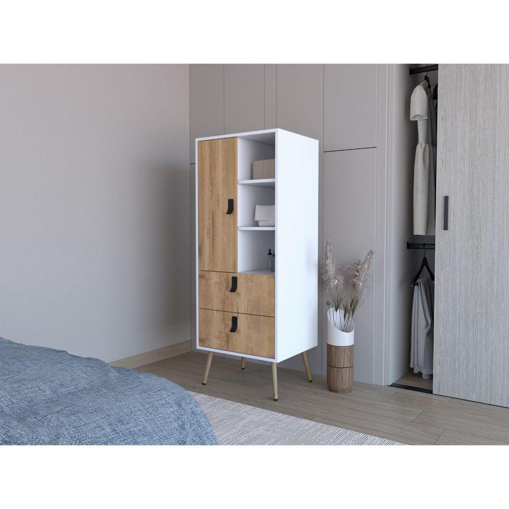 Organizador Huna, Macadamia y Blanco, con dos cajones diseño moderno ZF X2