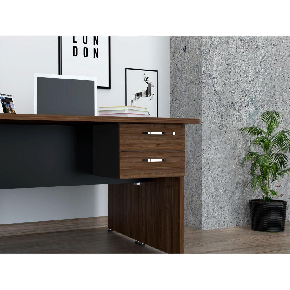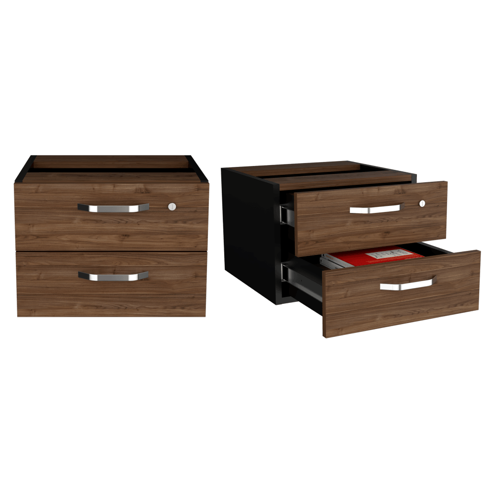 Organizador, con gran capacidad de alamacenamiento, dos cajones, cajón con cerradura y diseño moderno.