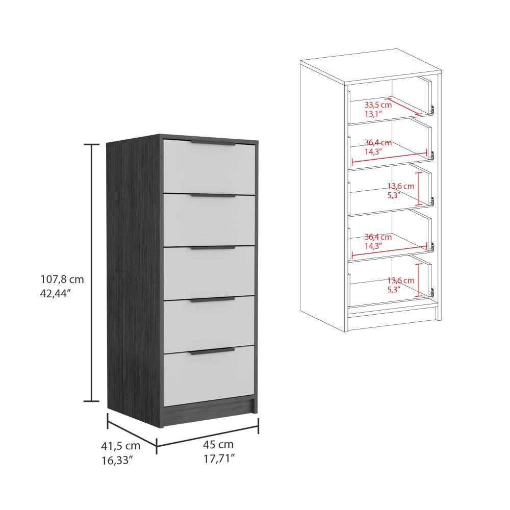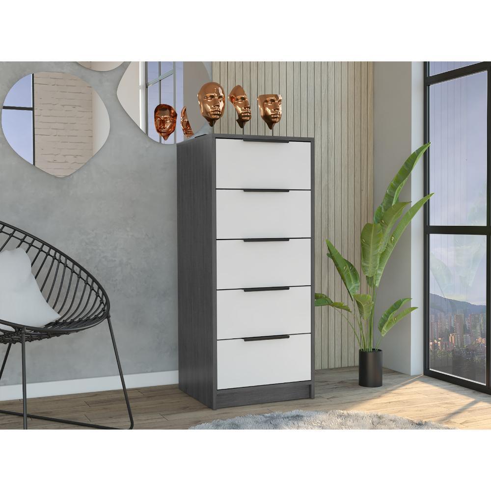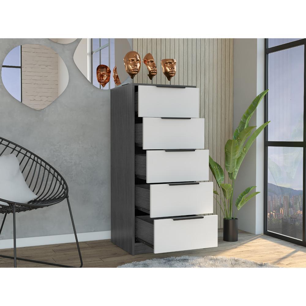 Organizador Wesley, Gris y Blanco, con Cinco Cajones Organizadores y Manijas Metálicas ZF