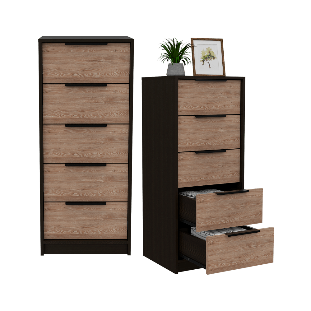 Organizador, con 5 cajones, diseño moderno con combinacion de colores, manijas metalicas y superficie para elementos decorativos.