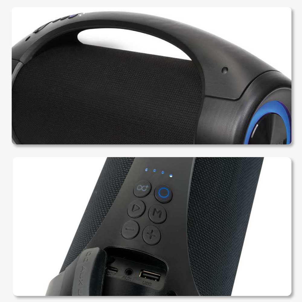 Parlante bluetooth 50W RMS con control asistido Siri/Google, Indicador de bateria LED blanco de 4 posiciones, Emparejamiento TWS con la misma referencia