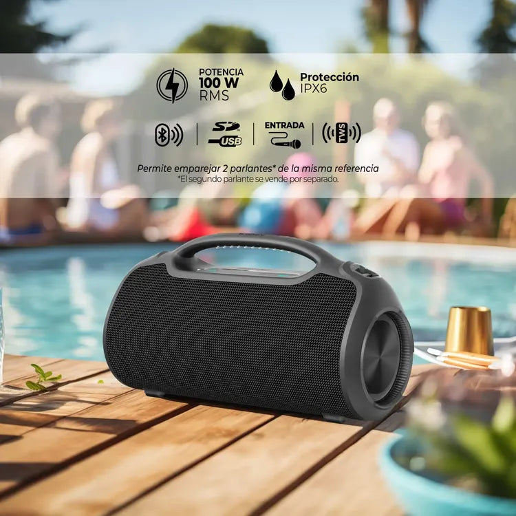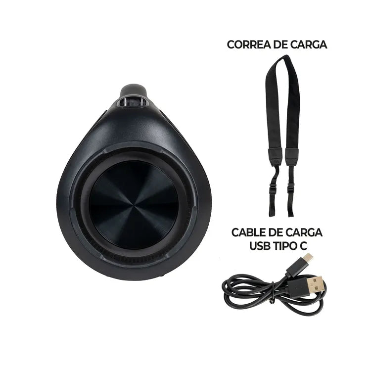 ¡Kalley te trae el parlante K-PBOOMPLUS para que la fiesta no pare! Sonido potente y envolvente, equipado con altavoces de graves (woofer), agudos (tweeter) y radiadores pasivos que aportan una excelente calidad de sonido. Batería de larga duración, material rígido y resistente para que lleves a donde quieras. Cuenta con protección IPX6, resistente a chorros de agua, para que te acompañe en todas las aventuras. Eleva tu experiencia musical a un nivel completamente nuevo con el parlante BOOM PLUS. ¡Prepárate para sentir la música como nunca! ¡Llévalo hoy mismo
