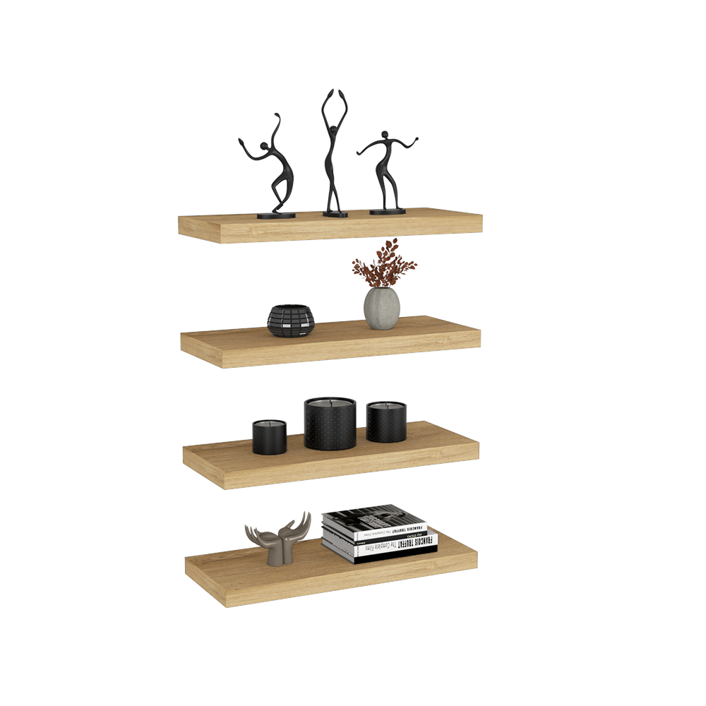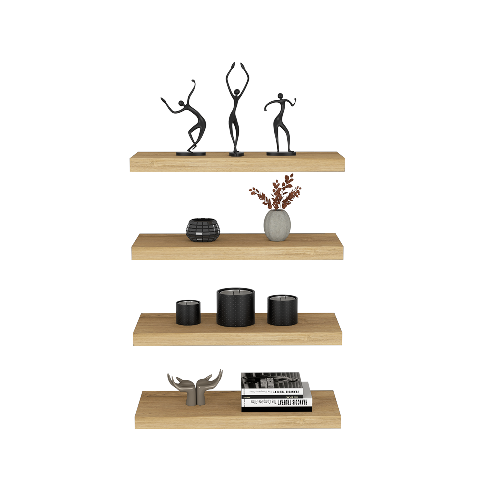Repisa Flotante x4 unidades, con espacio para ubicar objetos decorativos, equipos de audio video, entre otros, Incluye herraje para su instalación.