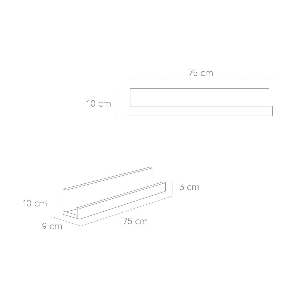 Repisa, decorativa en forma de J, contiene chazos tornillos y tapa tornillo para instalación.