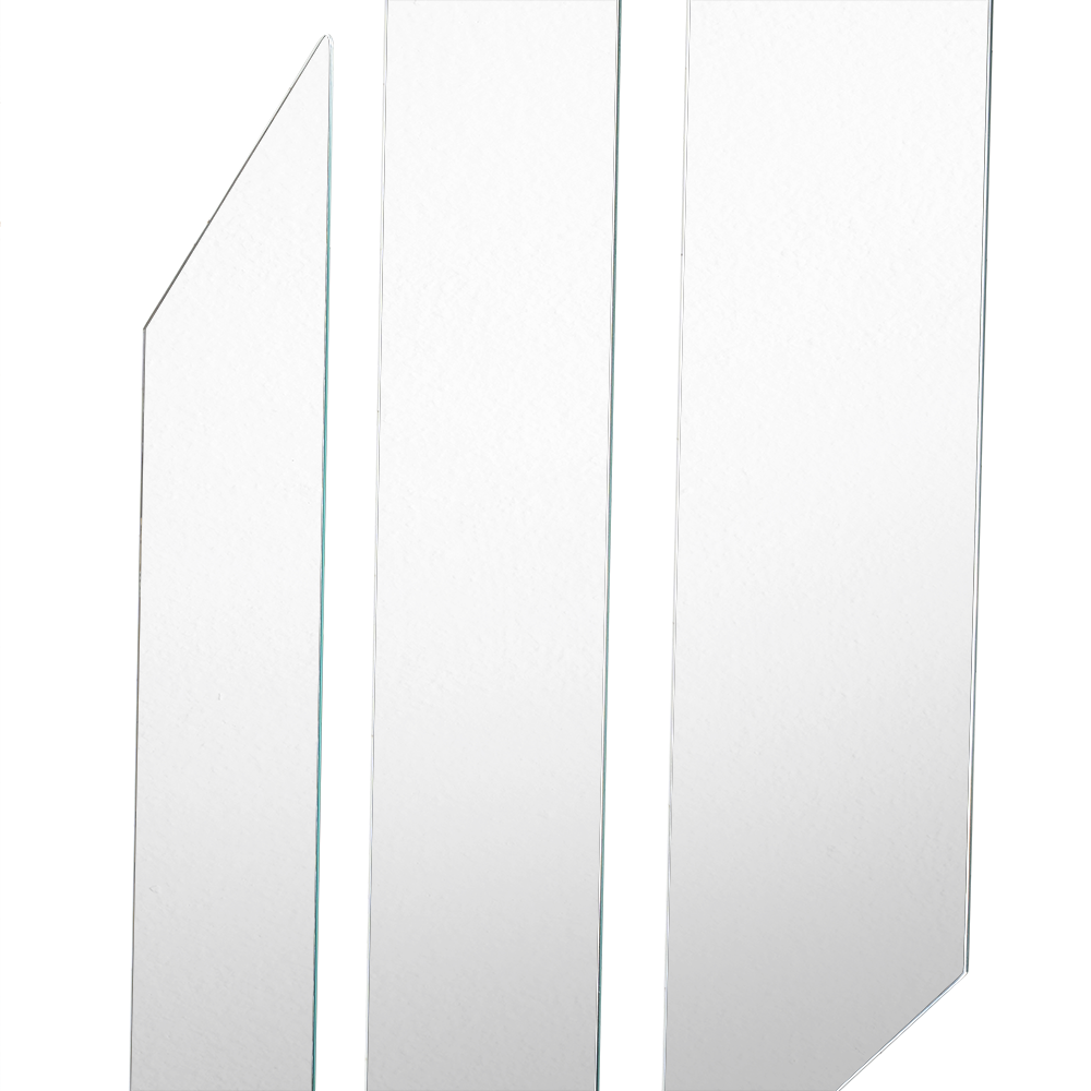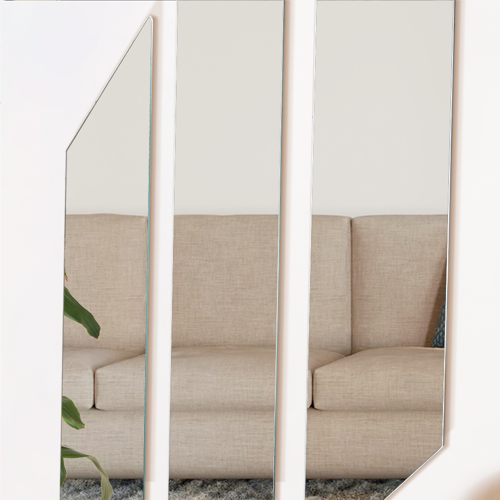 Set de 3 espejos rectangulares con extremos en diagonal; ensamble a la pared con cinta doble faz