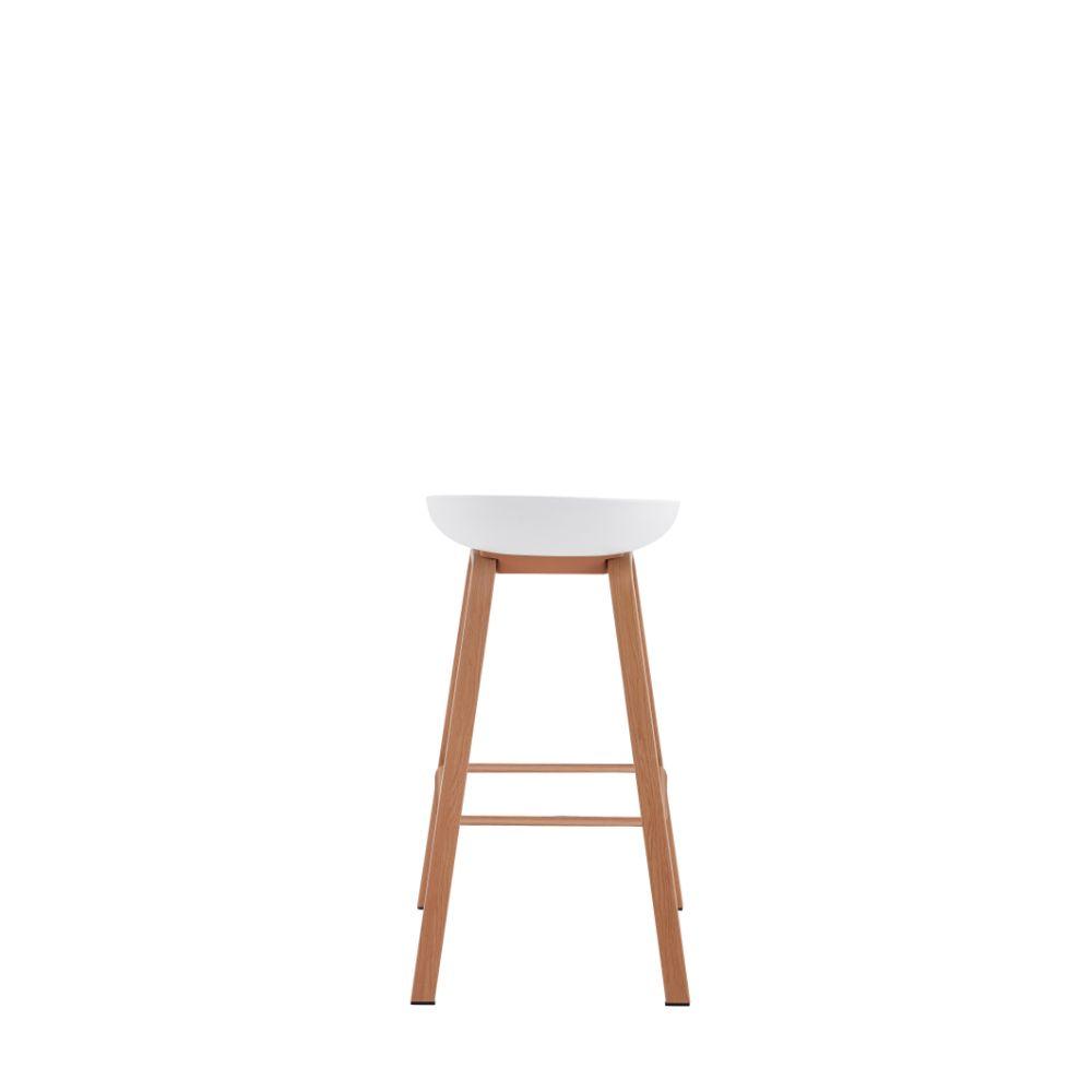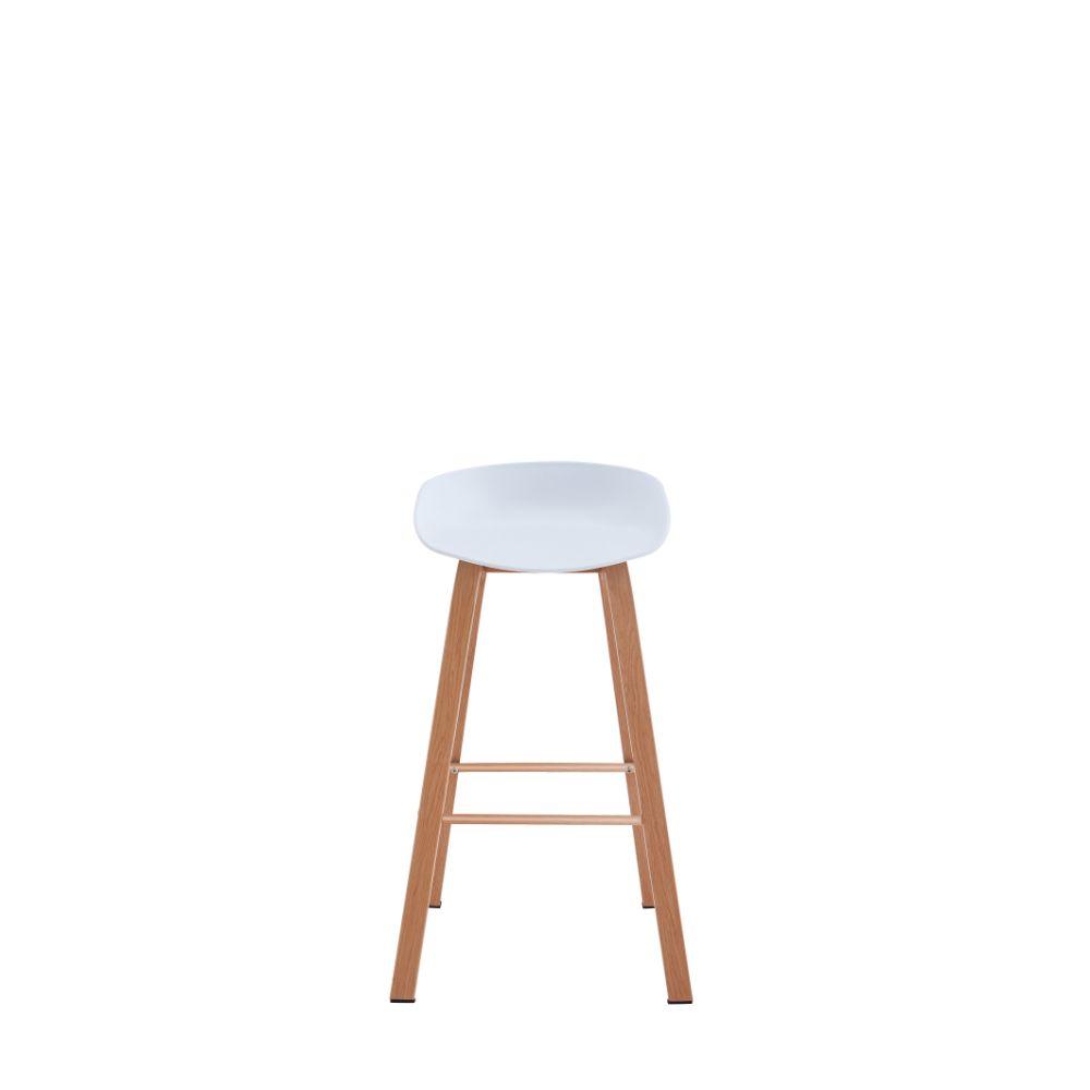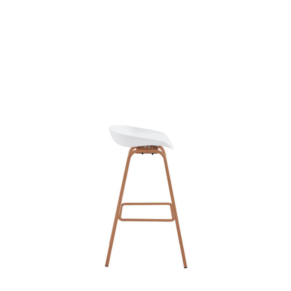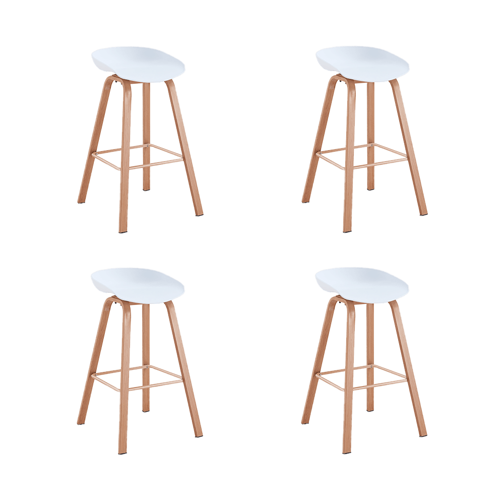 Set de Cuatro Butacos Yuski, Blanco y Café Claro, cómodo asiento y patas en metal color madera