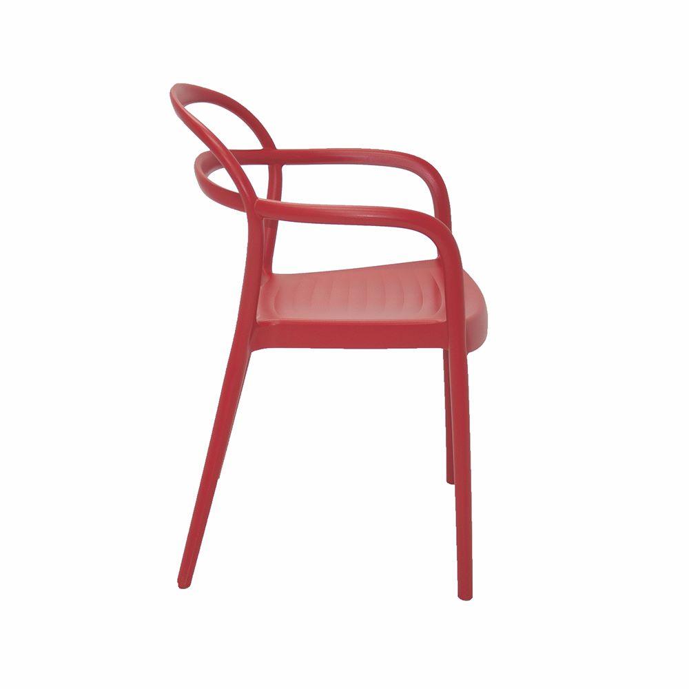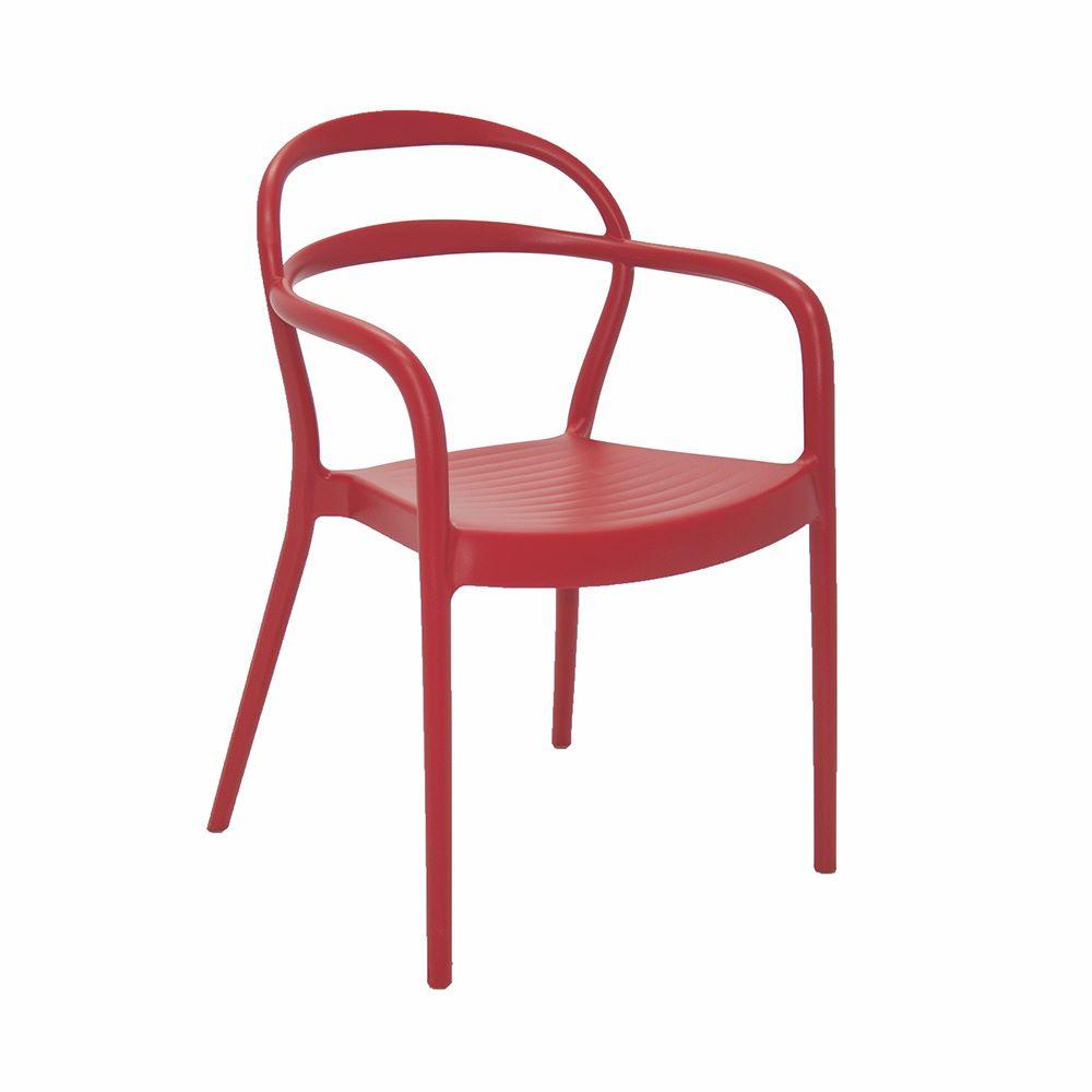 Sillón con Brazos Sissi, elaborado en Polipropileno y fibra de vidrio, asegura modernidad y versatilidad en sus ambientes, además de alta resistencia, soporta hasta 182 kilos, en color Rojo.