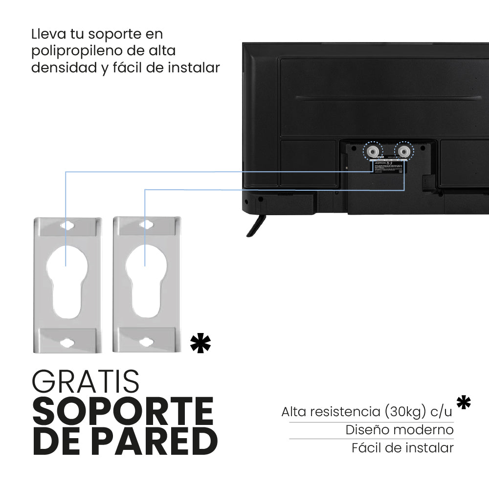Descubre el televisor LED de 32 pulgadas con calidad HD. Diseño elegante para todo tipo de habitación. Ideal para tu hogar o negocio. Compatible con TDT, estándar DVB T2, entrada para PC (VGA), 2 entradas HDMI, 1 entrada video compuesto, entre otros. Incluye soporte de pared.