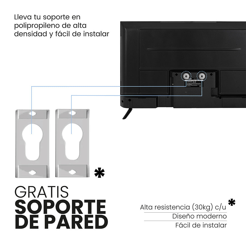 Con conectividad Wi-Fi, Bluetooth y múltiples puertos HDMI y USB, podrás conectar tus dispositivos favoritos sin complicaciones. Su diseño elegante en color negro se adapta a cualquier decoración, y su soporte de pared incluido te brinda la flexibilidad de colocarlo donde desees.