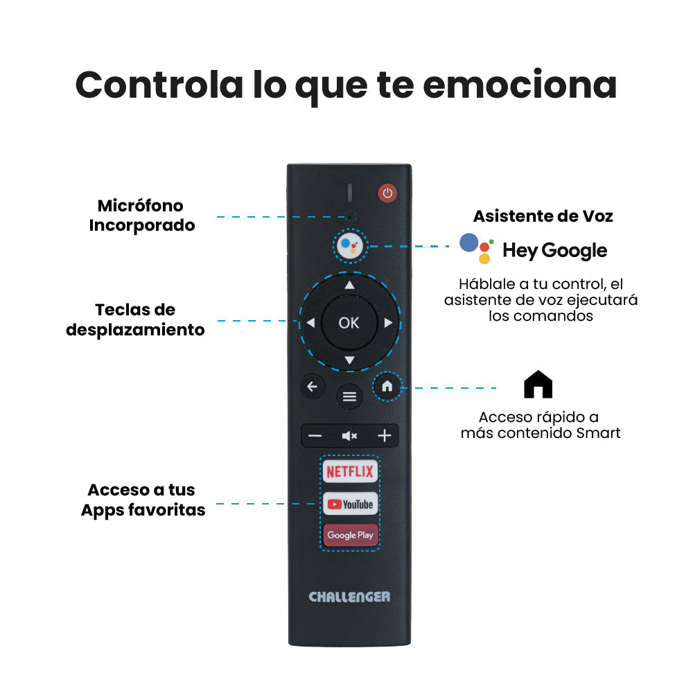 Televisor 55 Pulgadas Android TV Challenger, Color Negro