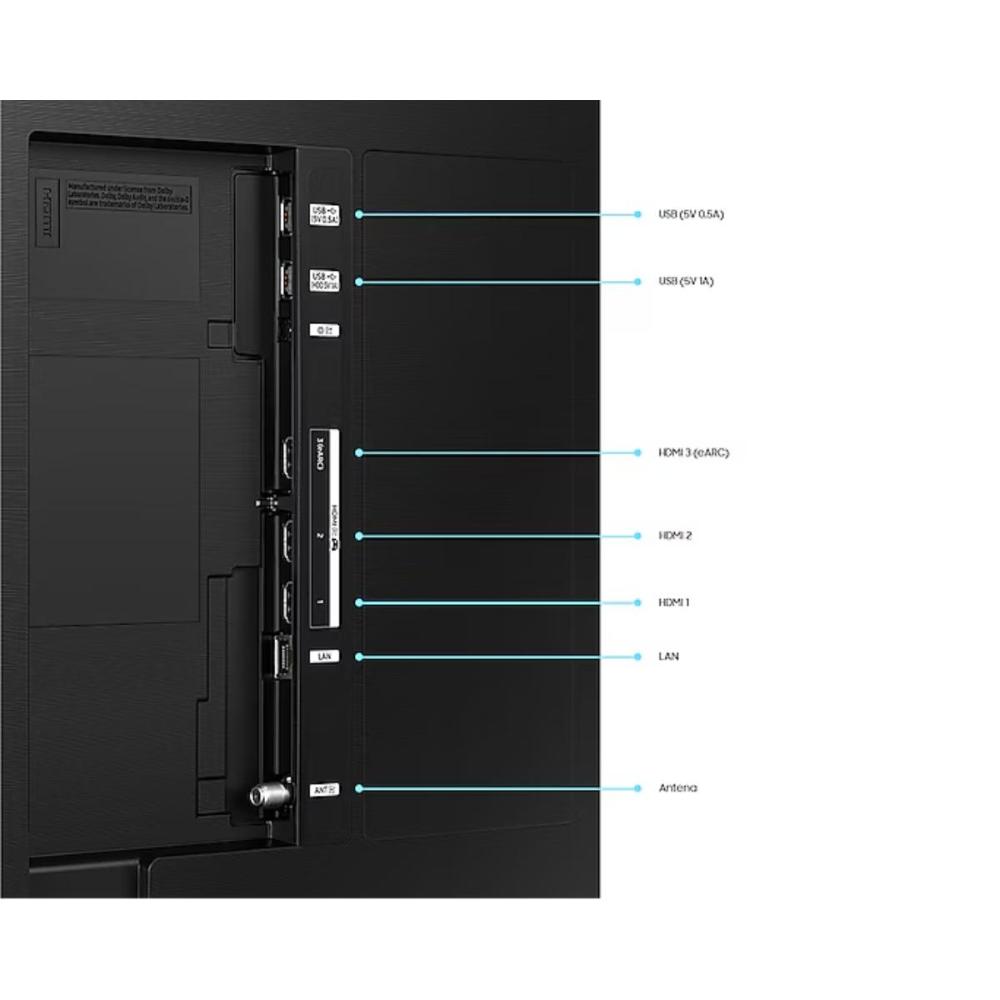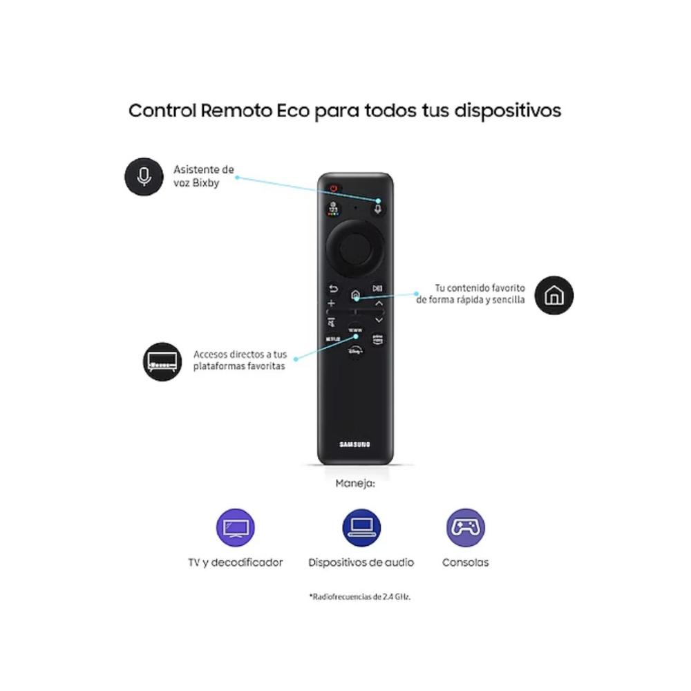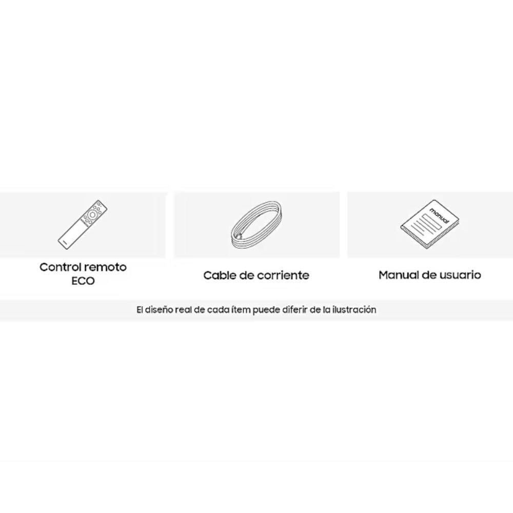 Smart TV, si es Smart TV asistente de voz si soporta asistente de voz sistema operativo tizen sintonizador digital DVB T2 Si tiene sintonizador digital DVB-T2 tiene tecnología para compartir pantalla si tiene opción de compartir pantalla potencia de audio 20 Watts velocidad de Respuesta del TV 120 Hz