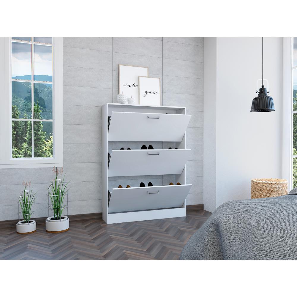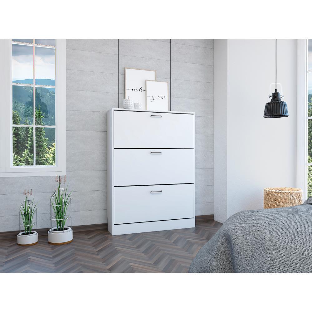 Zapatero Otawa, Blanco, diseño funcional con tres puertas abatibles